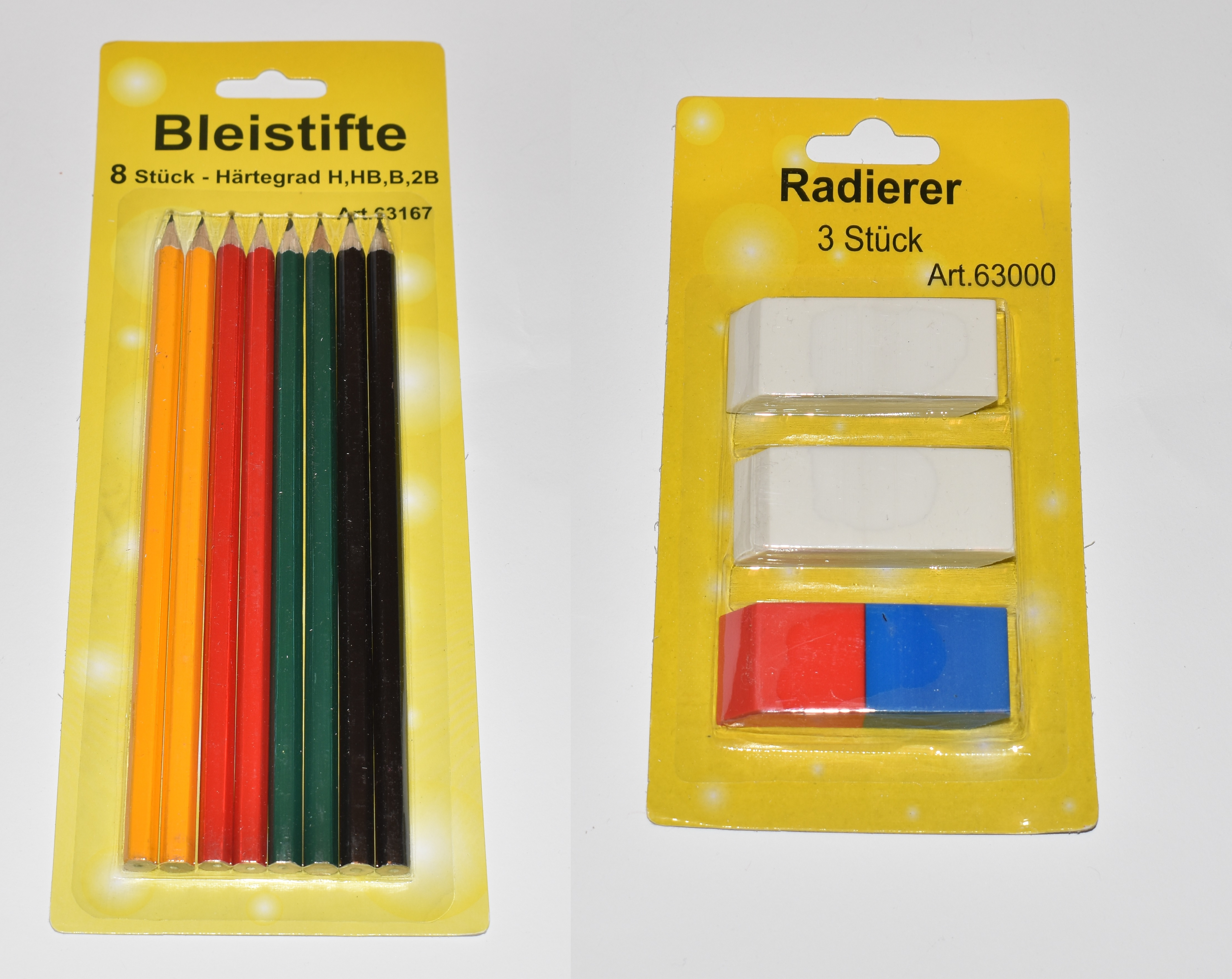 - Lieferumfang: 8 Bleistifte in Vorteilspackung + 3 Stück Radiergummi