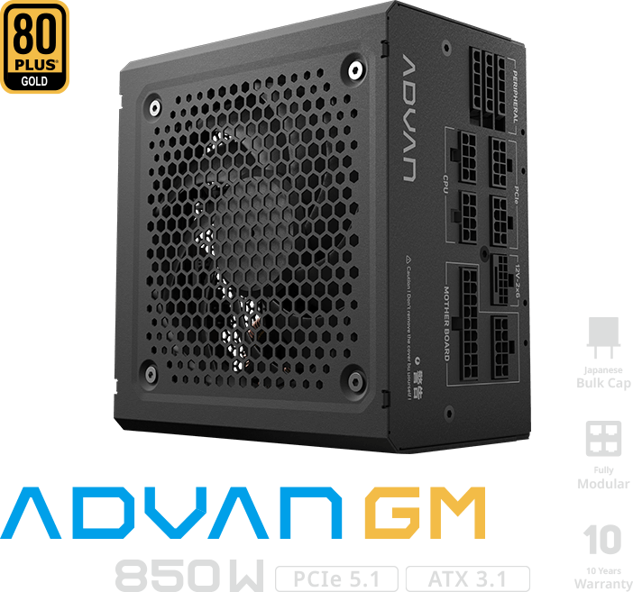 Die ADVAN GM-Serie ist sowohl mit der neuesten ATX 3.1-Verordnung kompatibel, um bis zu 200% Leistungsausweitung zu unterstützen, als auch mit der neuen Schnittstelle des PCIe 12V-2x6 Connectors, so dass auch bei zukünftigen Hardware-Upgrades Spitzenleistung gewährleistet ist.