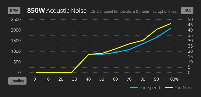 Bei einer Last unter 40% kann das Netzteil dank der sog. Eco-Fanless-Funktion ohne Lüfterbetrieb auskommen, wodurch es nahezu geräuschlos ist.